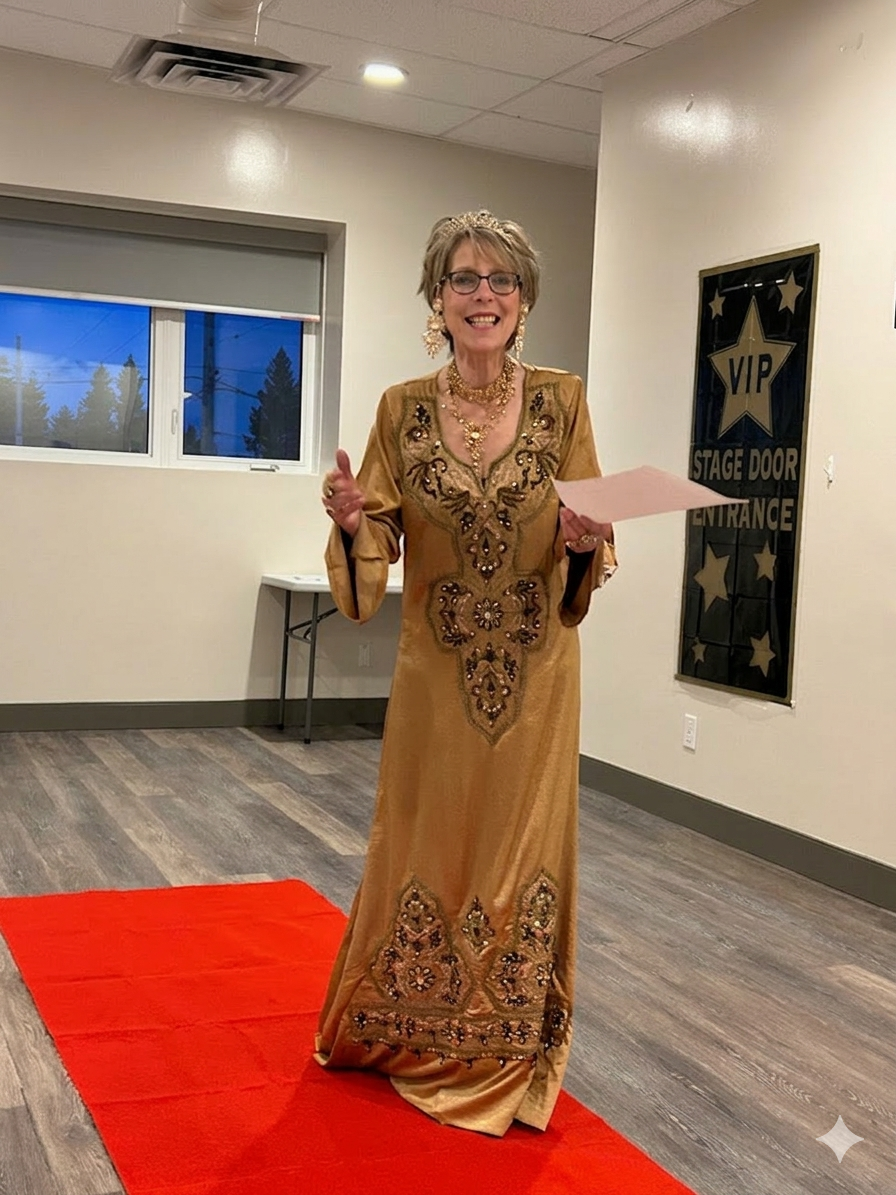 Sisters Joanne and Kathi teamed up to deliver a themed experience worthy of the red carpet. Joanne took on the role of Table Topics Master, dazzling us as her alter ego, Carol Brunette. With charm and wit, she welcomed a lineup of famous actors and actresses as they made their grand entrance, posing thoughtful and entertaining questions as if interviewing celebrities on Hollywood’s biggest night.